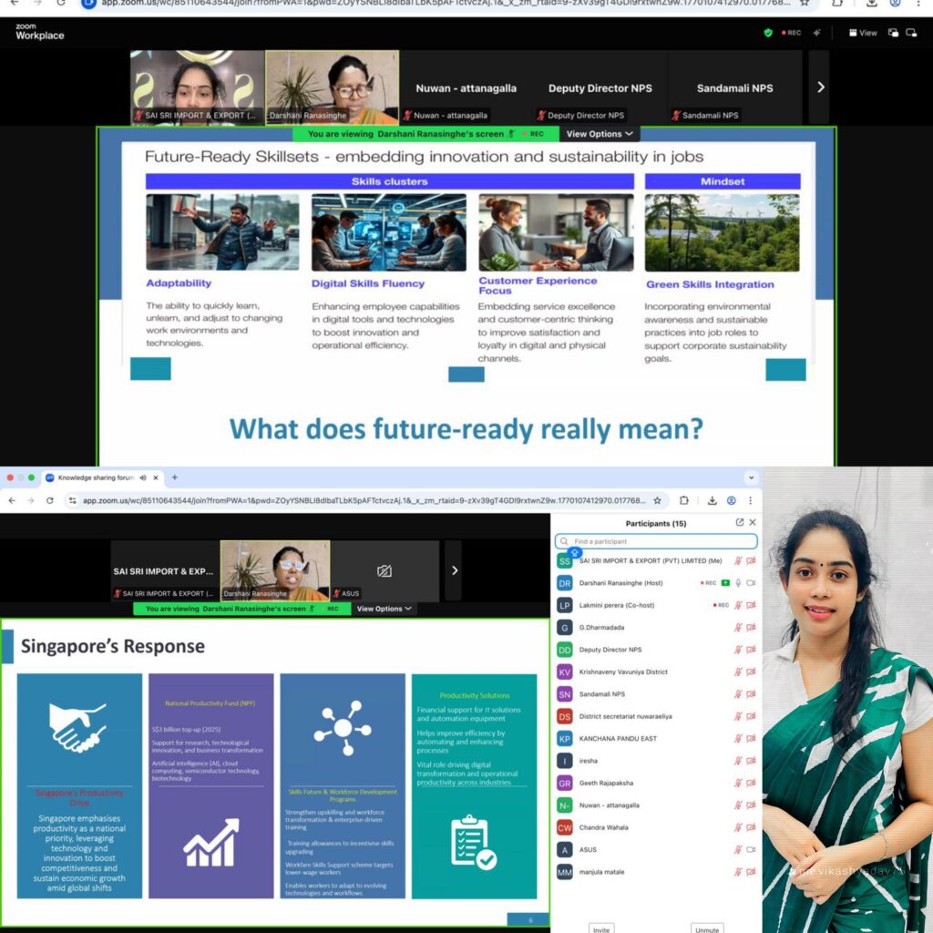 Proud to represent Sai Sri Import & Export (Pvt) Ltd at the Knowledge Sharing Forum organized by the National Productivity Secretariat, featuring Mrs. Darshani Devika Ranasinghe (Assistant Director), held on 03 February 2026.